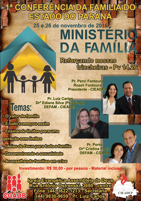 Mais um grande evento da CIEADEP, através do DEFAM (Departamento da Família). Dentre poucos dias será disponibilizado link para as inscrições on-line.