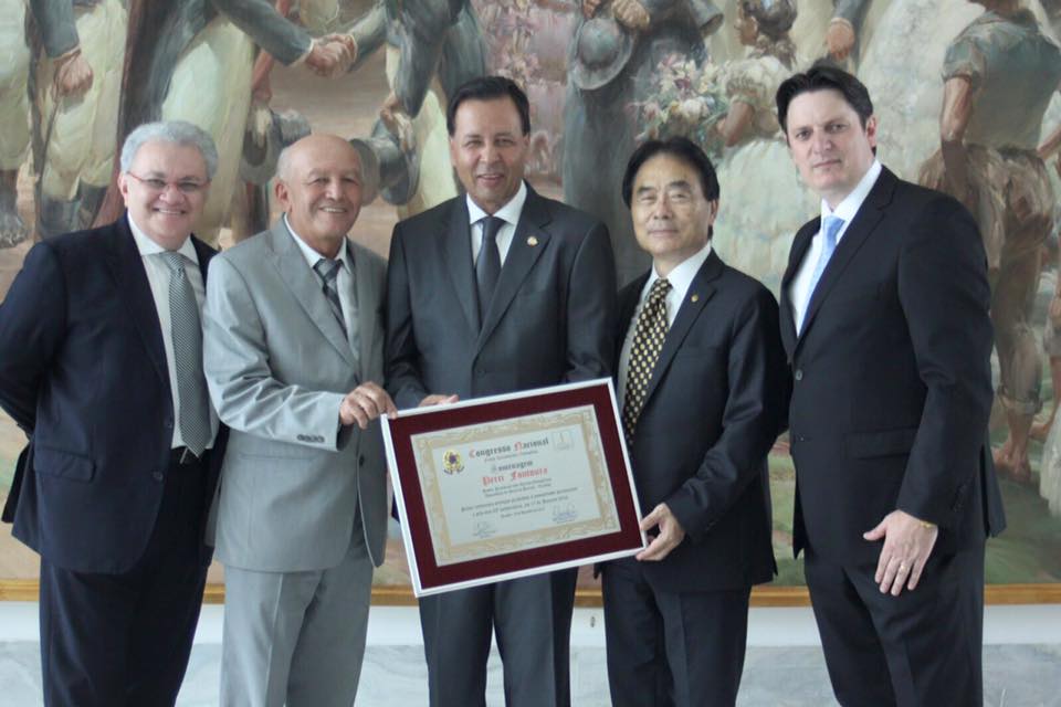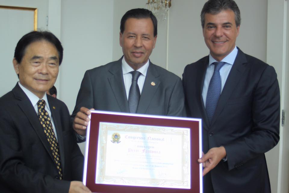 Pr. Takayma iniciou a palavra agradecendo o governador por recebe-los e também proporcionar esse momento ímpar para nosso pastores e liderança Eclesiástica do Paraná. Pr Takayma aproveitou para entregar ao Pr. Perci uma placa da frente parlamentar evangélica do congresso federal onde parabeniza-o pelo relevantes serviços prestados no estado e Brasil em favor do povo cristão.