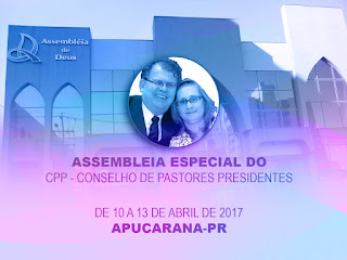 O Secretário da CIEADEP – Convenção das Igrejas Evangélicas Assembleia de Deus no Estado do Paraná, Pr. Daniel Sales Acioli, coloca a disposição dos ministros, convocação da Assembleia Especial do CPP e lista de hotéis em Apucarana.