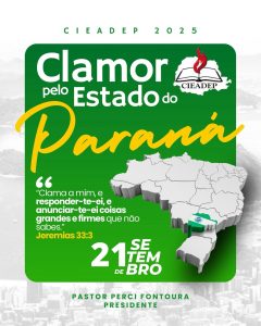 Este é um tempo em que a Igreja é chamada a clamar pelo nosso Estado e por nossa amada CIEADEP, confiantes na promessa de Jeremias 33:3: “Clama a mim, e responder-te-ei, e anunciar-te-ei coisas grandes e firmes que não sabes.”