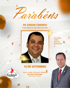 A mesa diretora da CIEADEP através do seu Presidente Pastor Perci Fontoura, parabeniza Pastor Edison Camargo Presidente AD Ortigueira, pela passagem de seu aniversário. Deus abençoe ricamente sua vida, família e ministério!