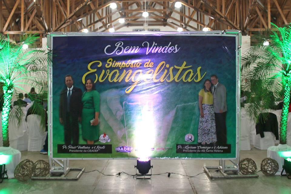 O primeiro Simpósio de Evangelistas da CIEADEP, realizado nos dias 29 a 31 de julho, na cidade de Santa Helena, foi um sucesso! Este evento que nasceu no coração do Presidente da Convenção Pr. Perci Fontoura terminou com gosto de quero mais.A Comissão criada na AGO do CPP – Conselho de Pastores Presidente na cidade de Apucarana, em abril deste ano, formado pelos seguintes pastores: Luciano Camargo (Presidente) Miguel Alves da Silva, Simão Fernandes e Elias Alves, realizaram um lindo trabalho.